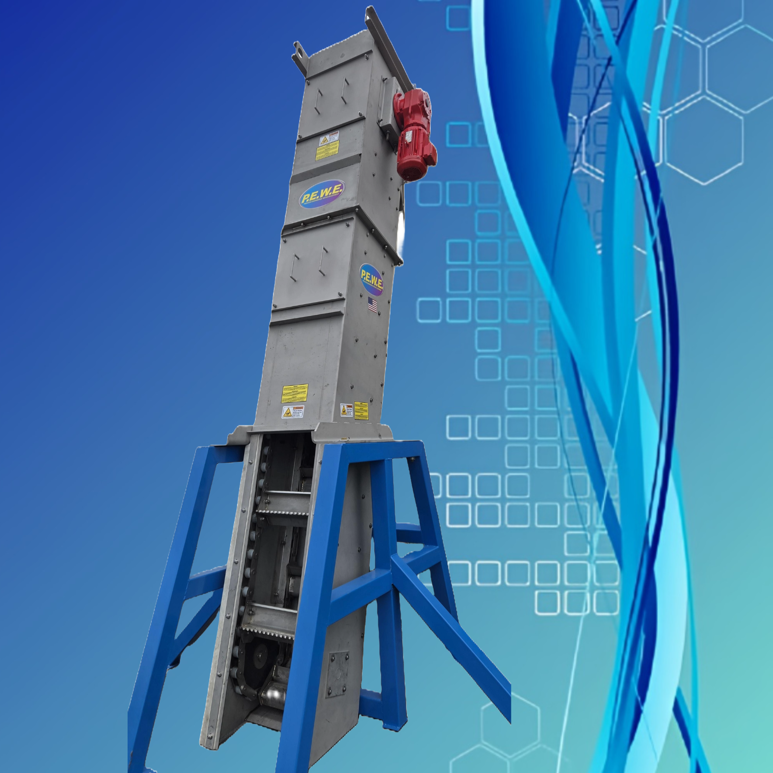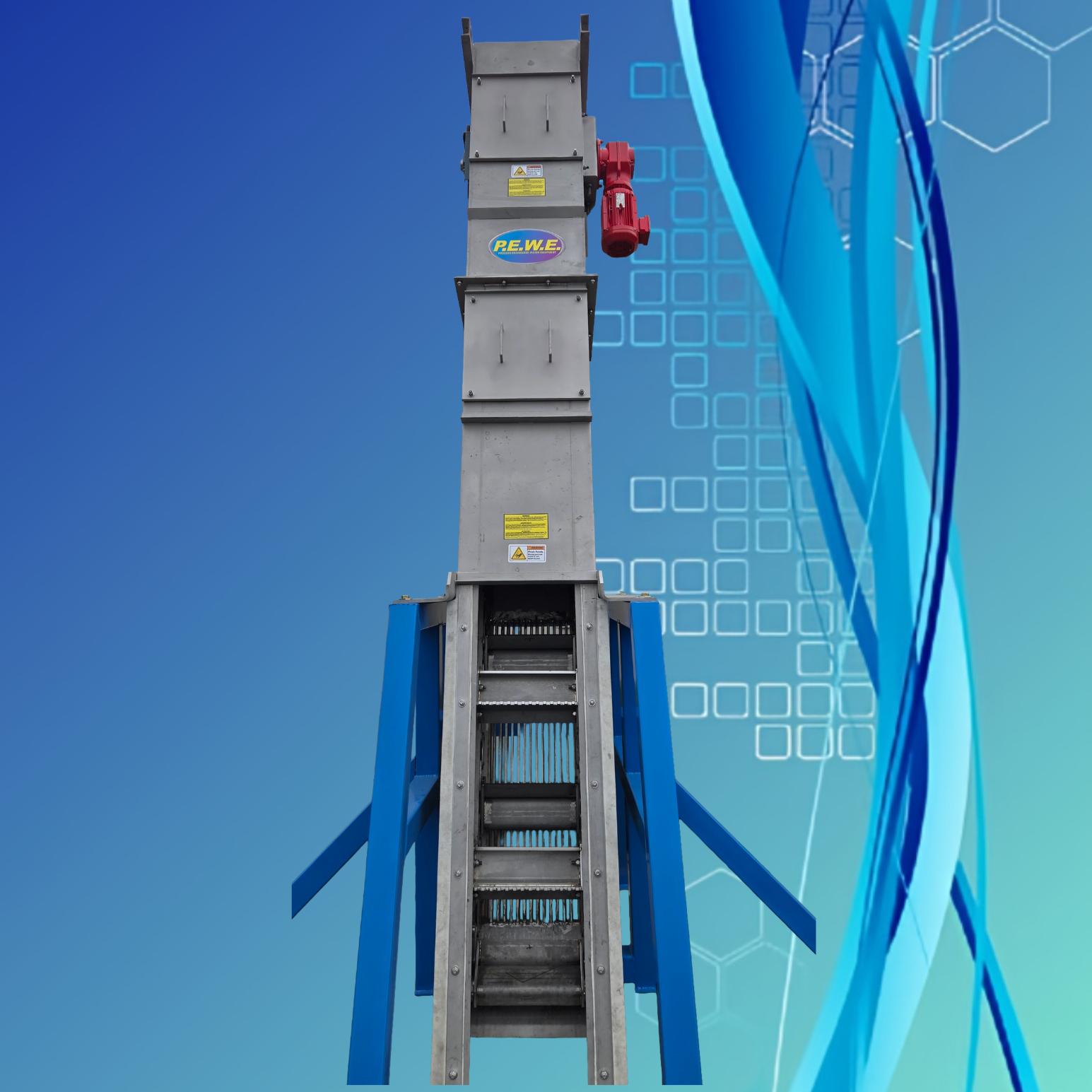 The PEWE SuperSkreen® SSB Bar Screen consists of a bar/flight screen, rack and frame carrier assembly, and a variable speed mechanical drive system. The SSB will be supplied with a flanged solids discharge chute. The SSB is designed to removal large solids from the waste stream without jamming. The unit will utilize a chain driven transport to deposit solids and allow the liquid to drain off directly.