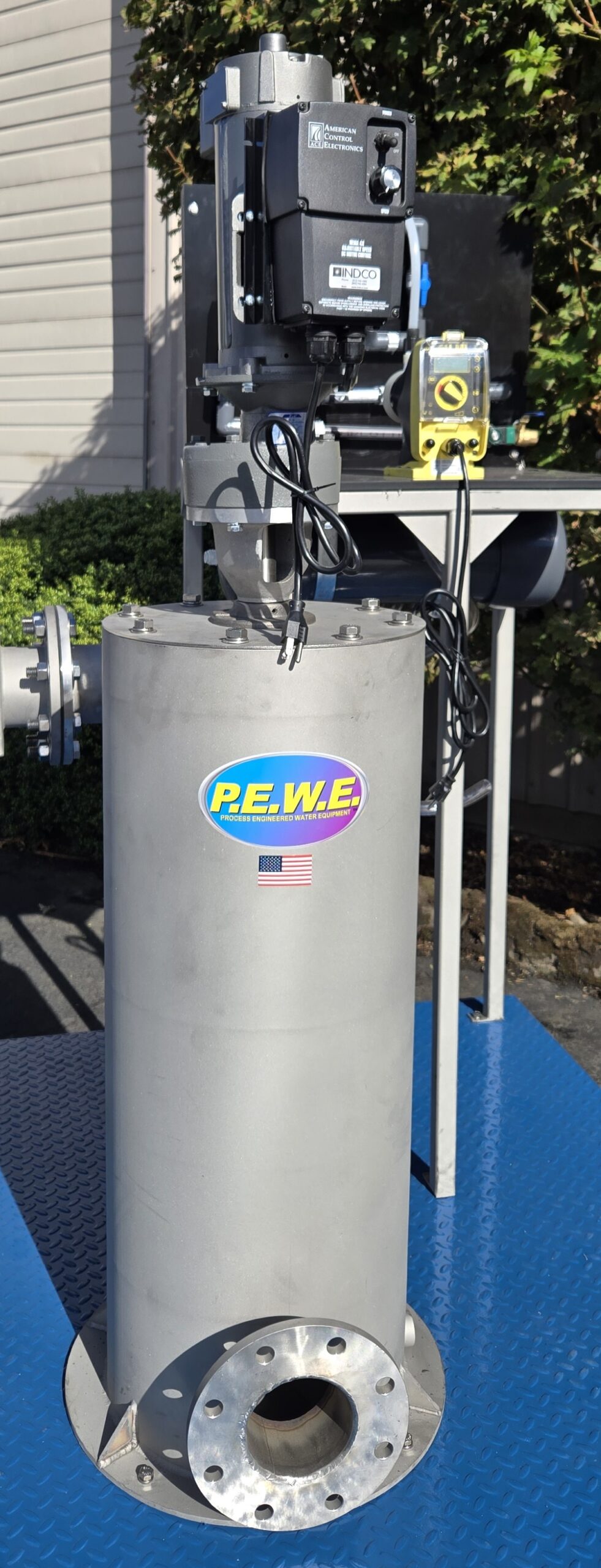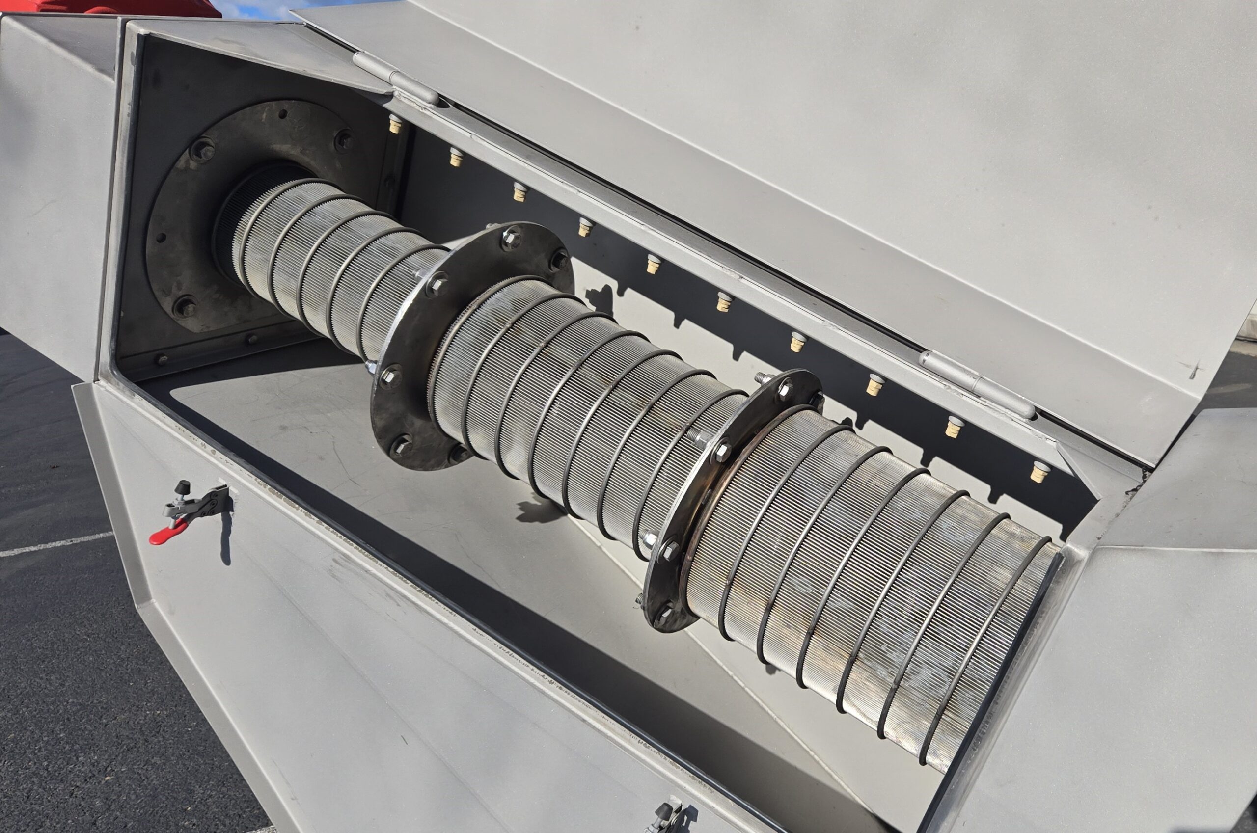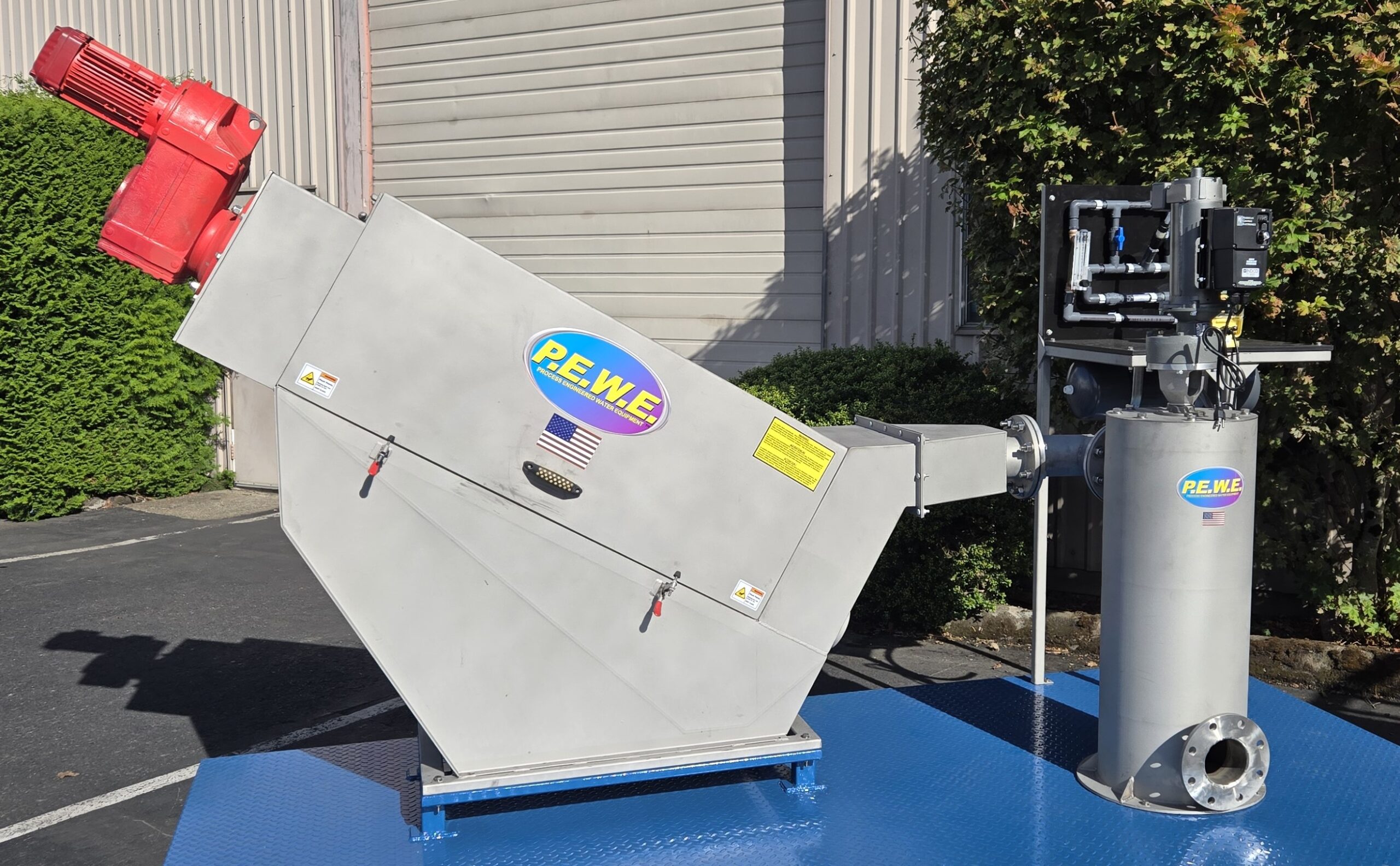 The PEWE DeWater®TSP first features a polymer and solids pre-blending system with fine adjustment. The enclosed screw assembly will consist of a heavy-duty shafted spiral with three stages of progressive compression. The shaft is direct coupled to a gear motor. The press zone consist of a cylindrical wedgewire insert, shower manifold and duplex access doors. The TSP unit comes with an inclined support base for capturing the filtrate. The TSP may be ordered with a PEWE Command Control® RX panel.