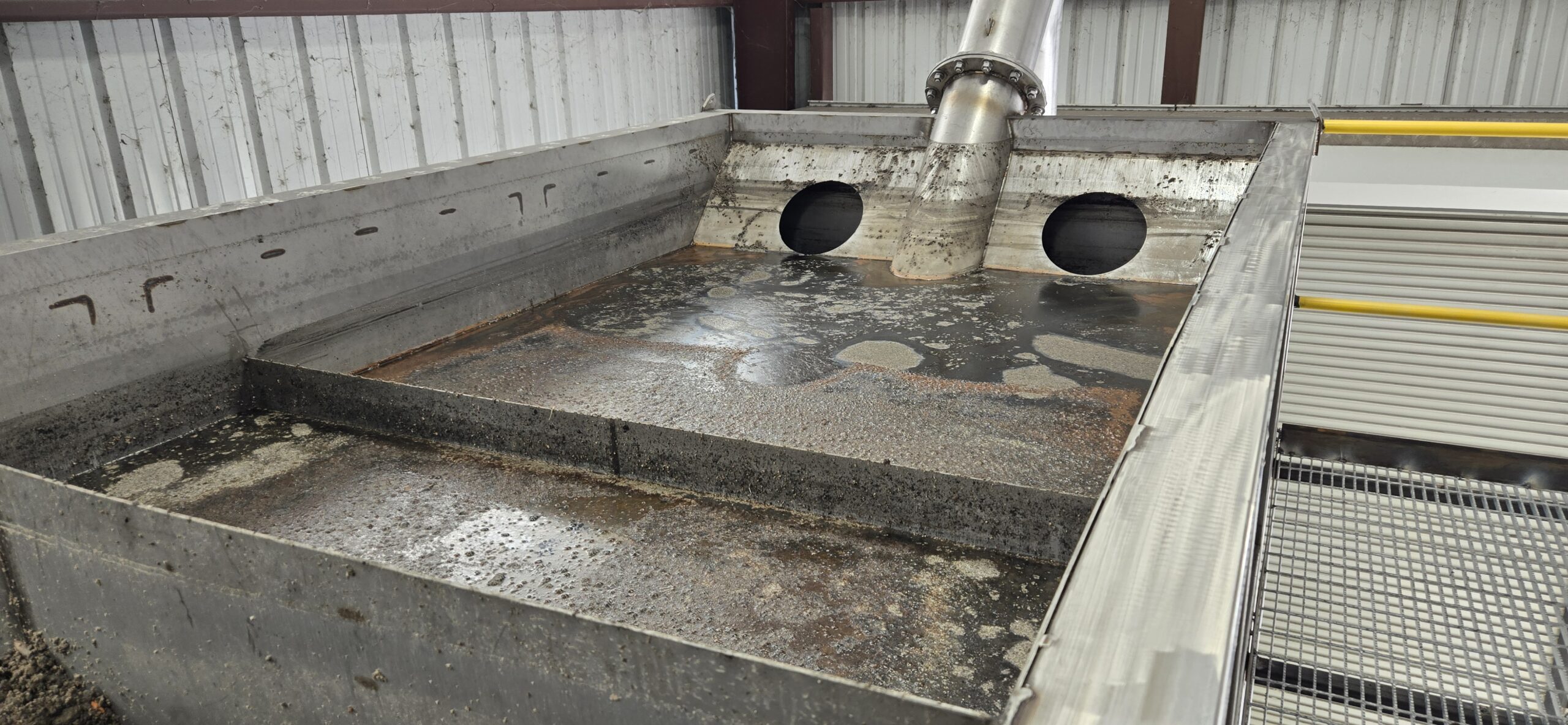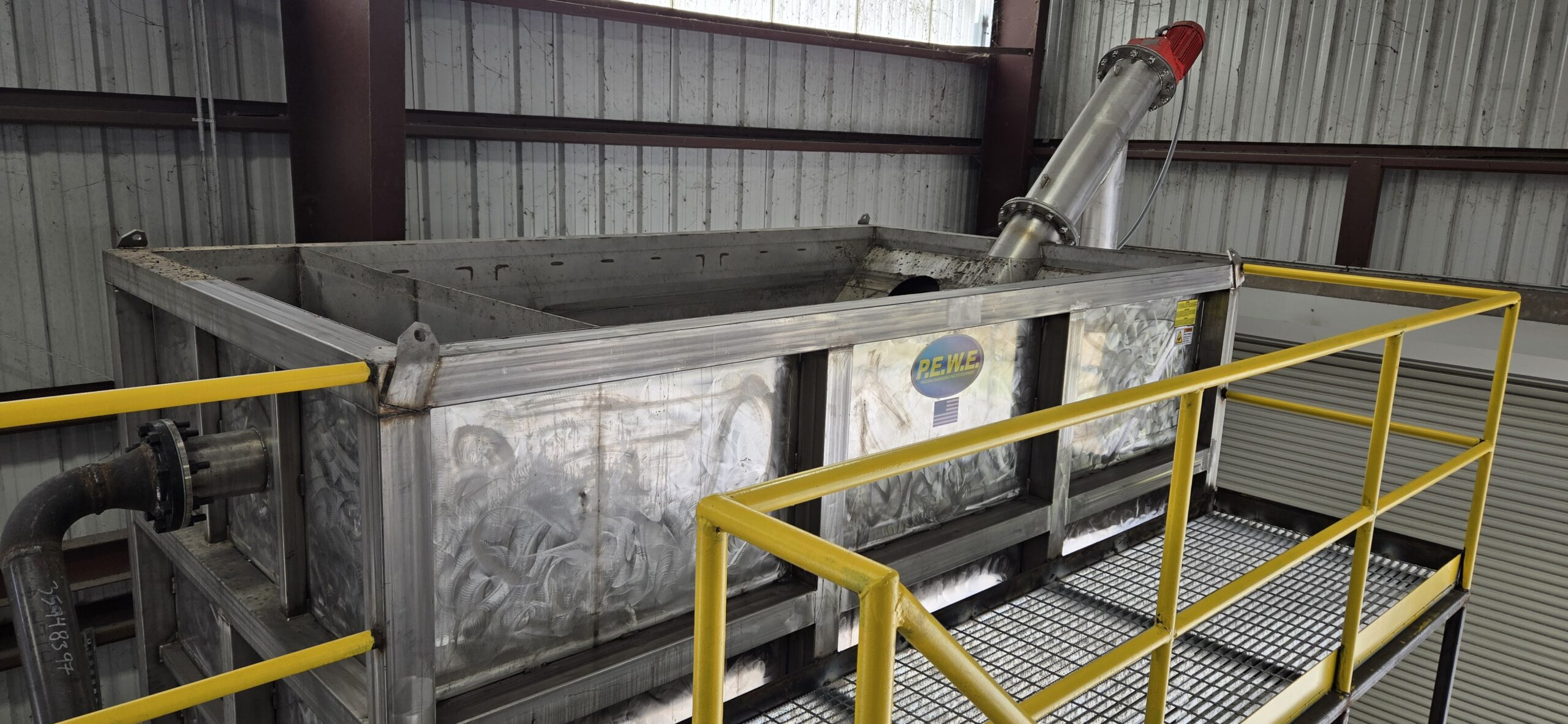 The PEWE DeWater® ST-1000 Sand Trap consists of an auger screw assembly, transport tube, water basin and mechanical drive system. The ST-1000 is the first step in separating sandy solids out of wastewater stream. The large inlet tank allows water retention time, letting solids settle into the basin. From here the solids are picked up by an auger and dumped. The water as it rises is dumped into a basin to then be transferred out for further processing.